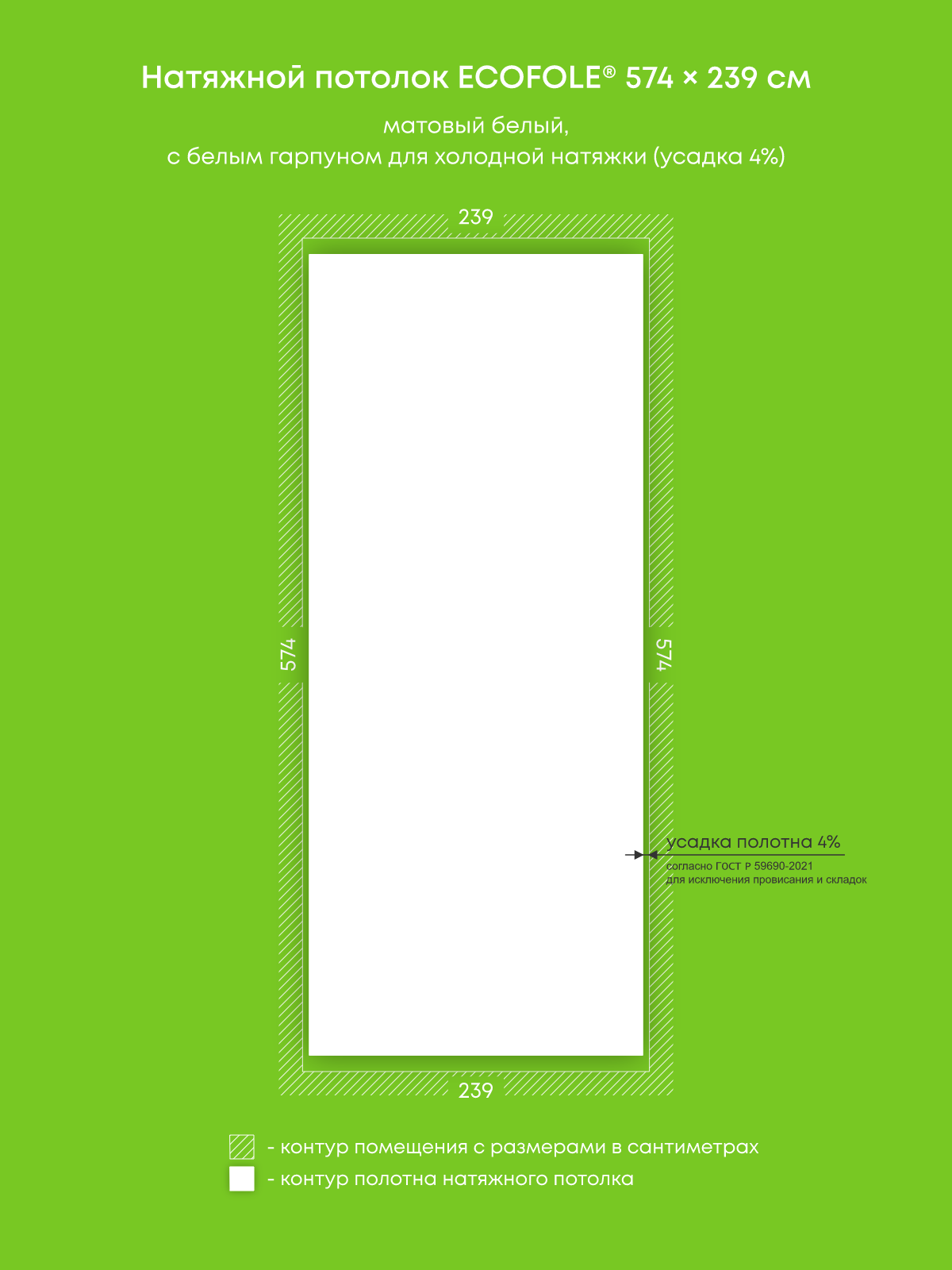 Натяжной потолок белый матовый, изготовленный по индивидуальным размерам покупателя, для ванной площадью 13.7 м2