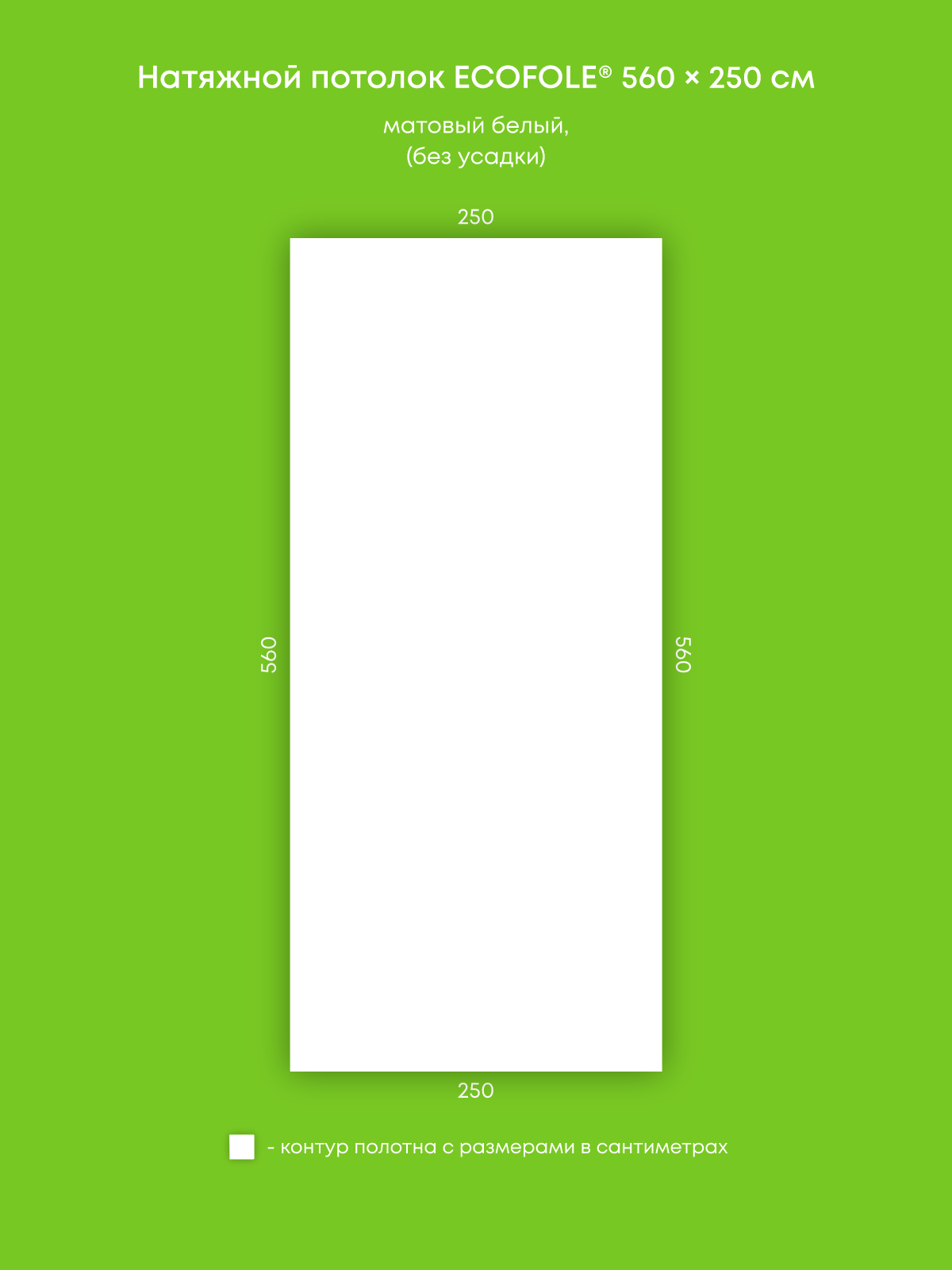 Натяжной потолок белый матовый, изготовленный по индивидуальным размерам покупателя, для помещения площадью 14 м2