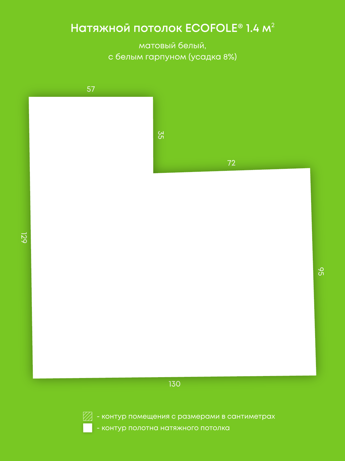 Натяжной потолок белый матовый, изготовленный по индивидуальным размерам покупателя, для помещения площадью 1.4 м2