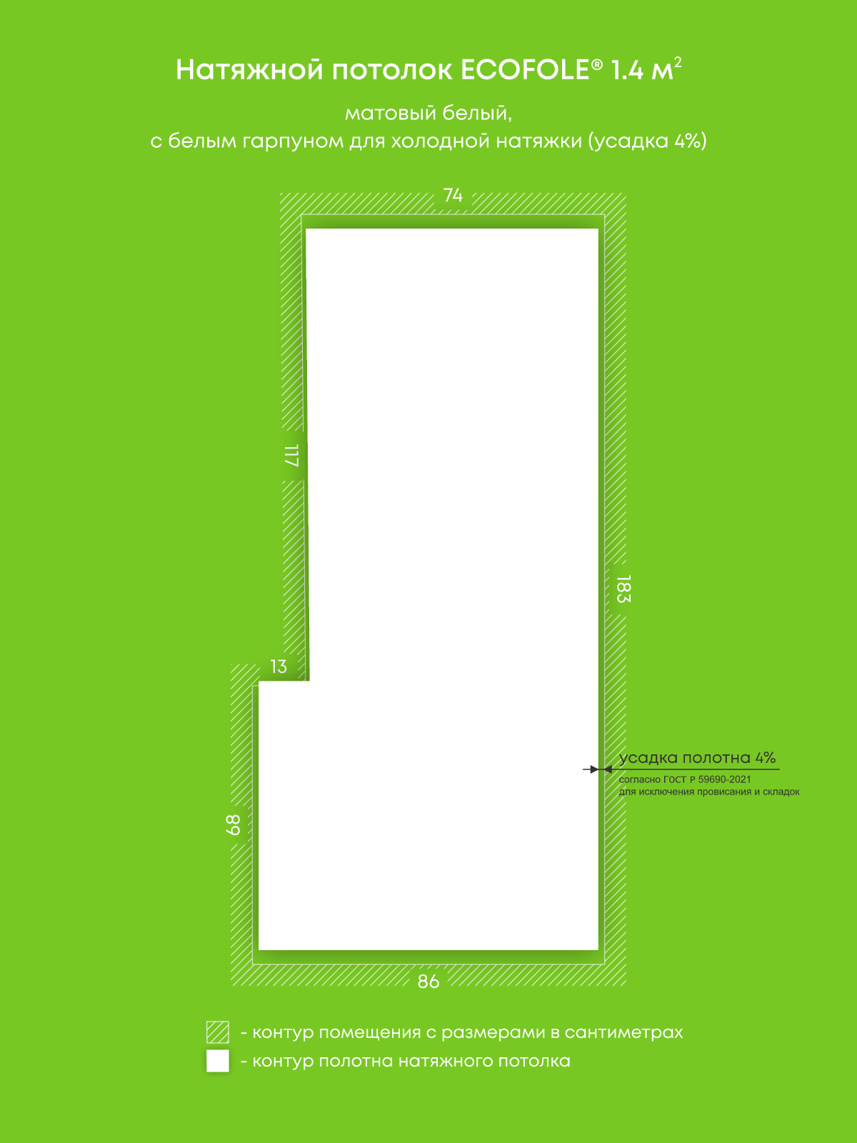 Матовый натяжной потолок 1.4 м2