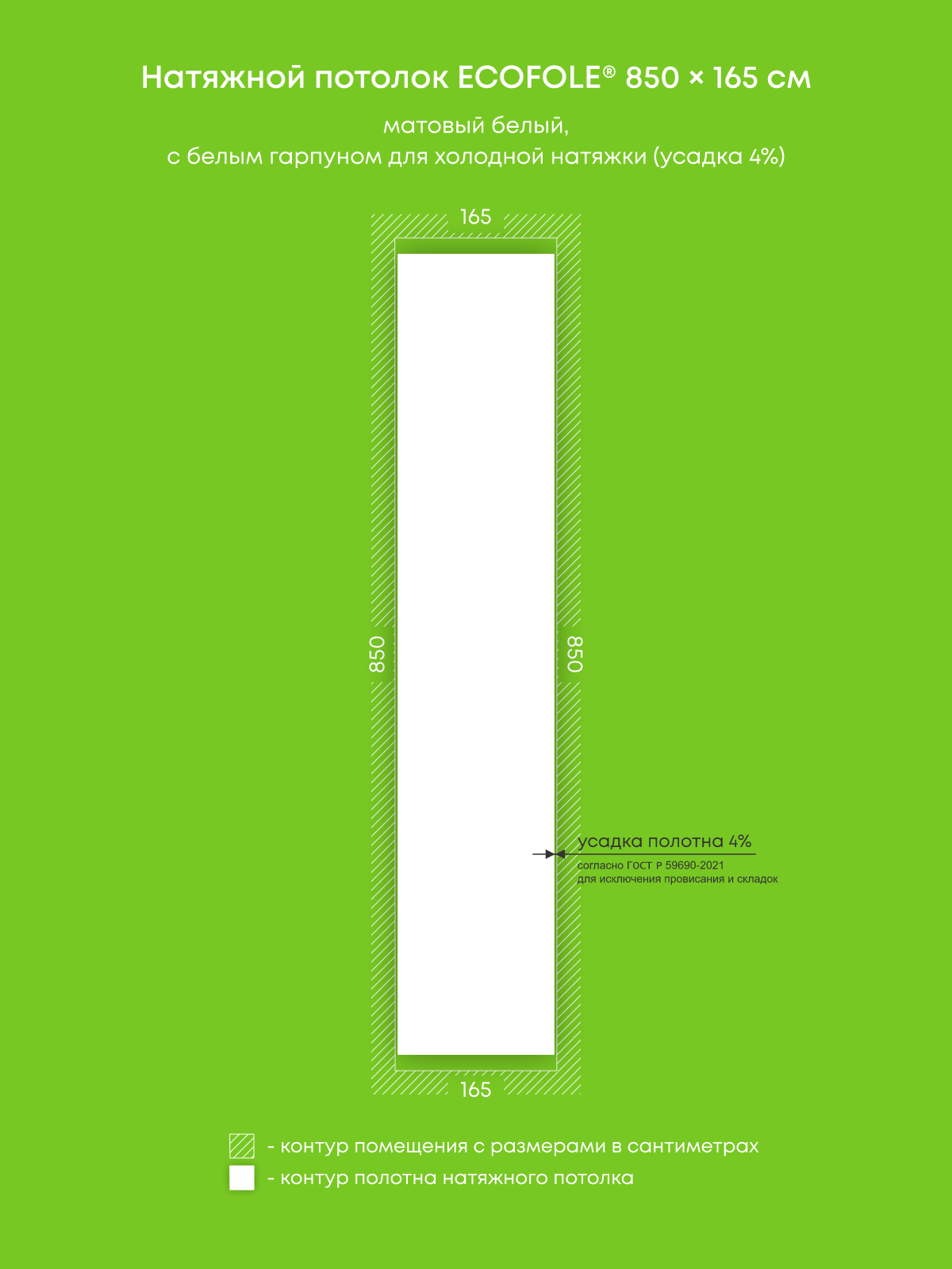 Натяжной потолок белый матовый, изготовленный по индивидуальным размерам покупателя, для помещения площадью 14 м2