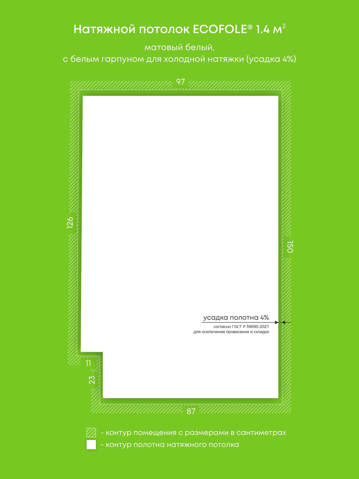 Матовый натяжной потолок 1.4 м2