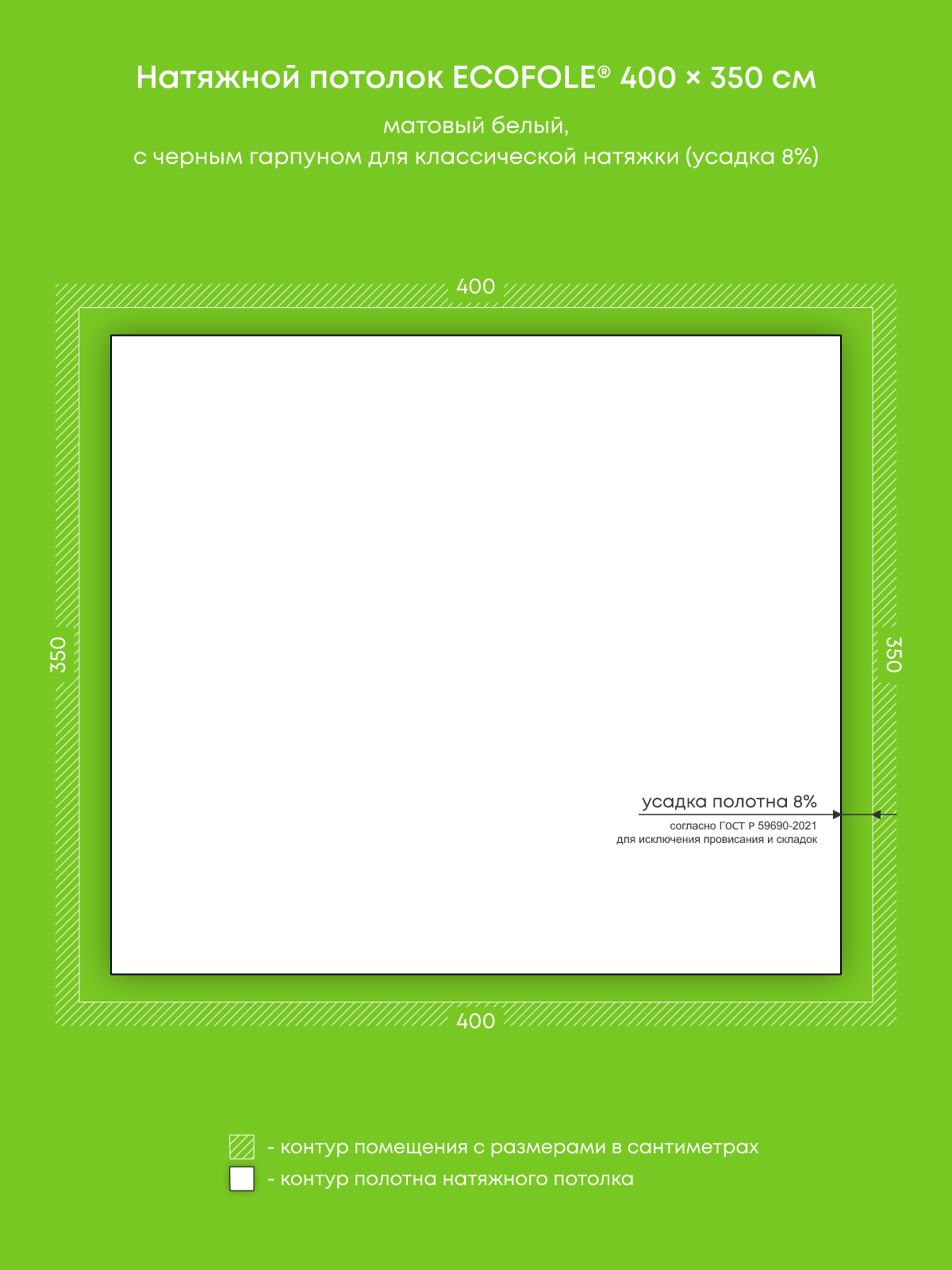 Натяжной потолок белый матовый, изготовленный по индивидуальным размерам покупателя, для помещения площадью 14 м2