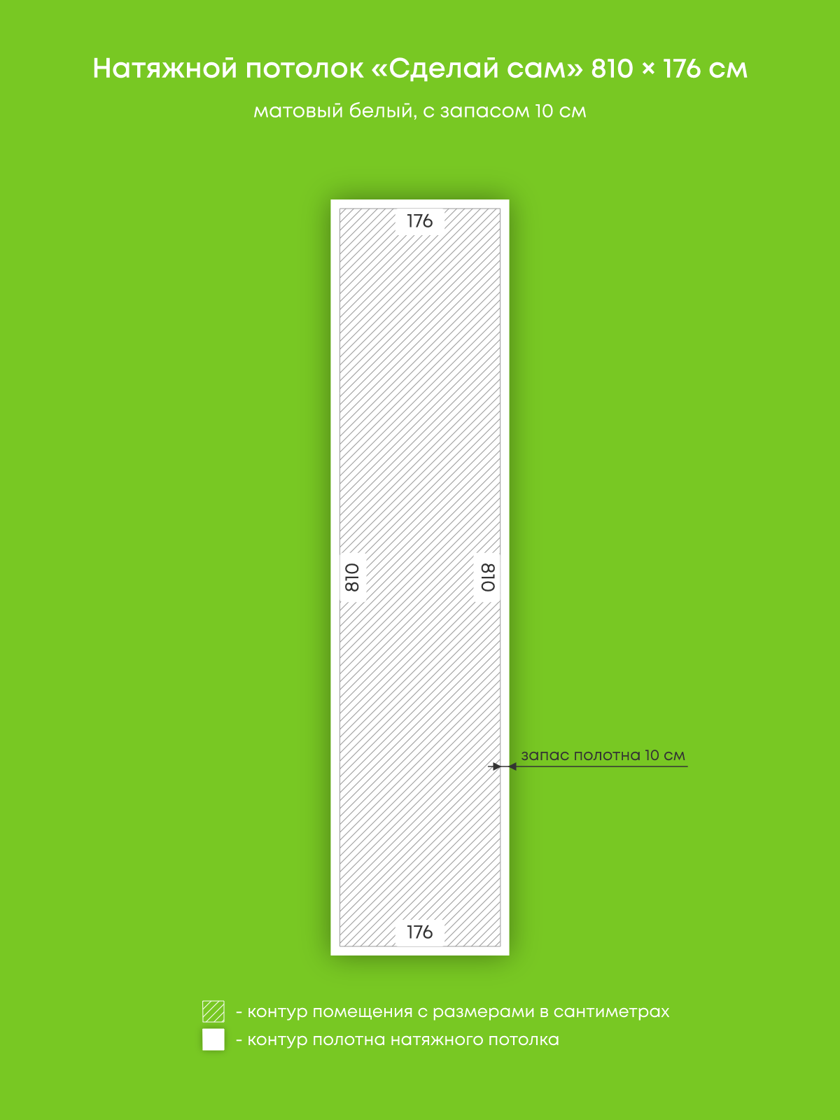 Натяжной потолок белый матовый, изготовленный по индивидуальным размерам покупателя, для помещения площадью 14.3 м2