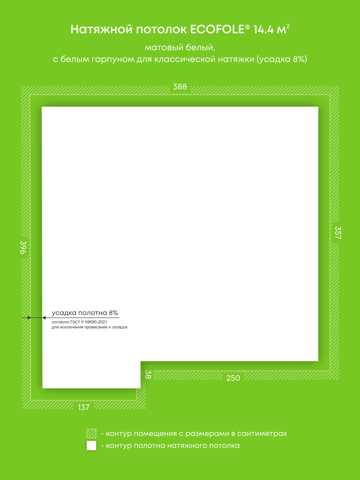 Матовый натяжной потолок 14.4 м2