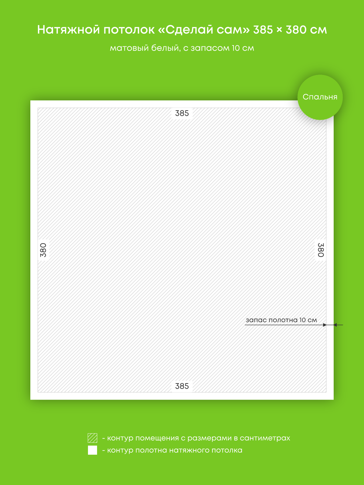 Натяжной потолок белый матовый, изготовленный по индивидуальным размерам покупателя, для спальни площадью 14.6 м2