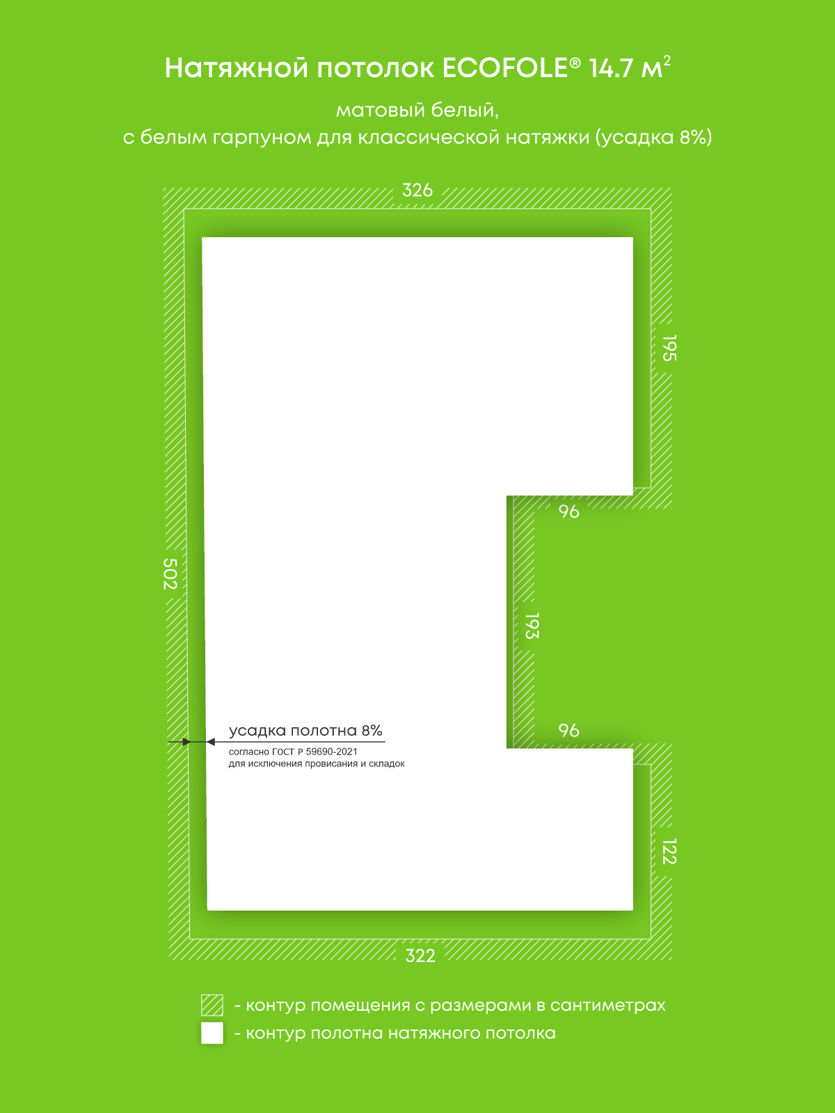 Матовый натяжной потолок 14.7 м2
