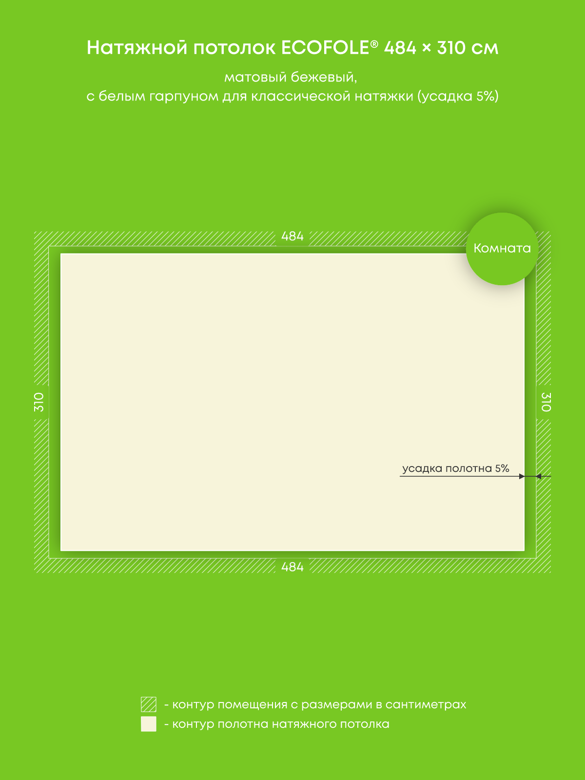 Натяжной потолок бежевый матовый, классической натяжки, изготовленный по индивидуальным размерам покупателя, для помещения площадью 15 м2