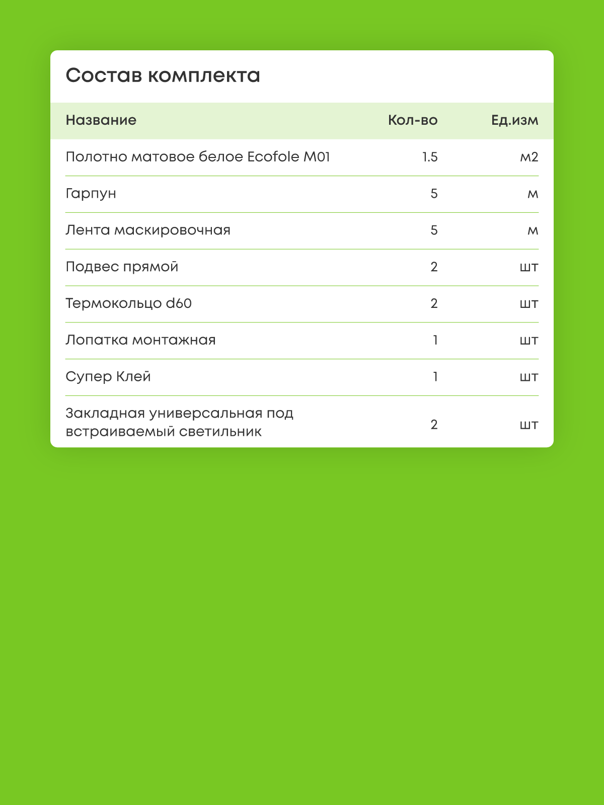 Матовый натяжной потолок 1.5 м2