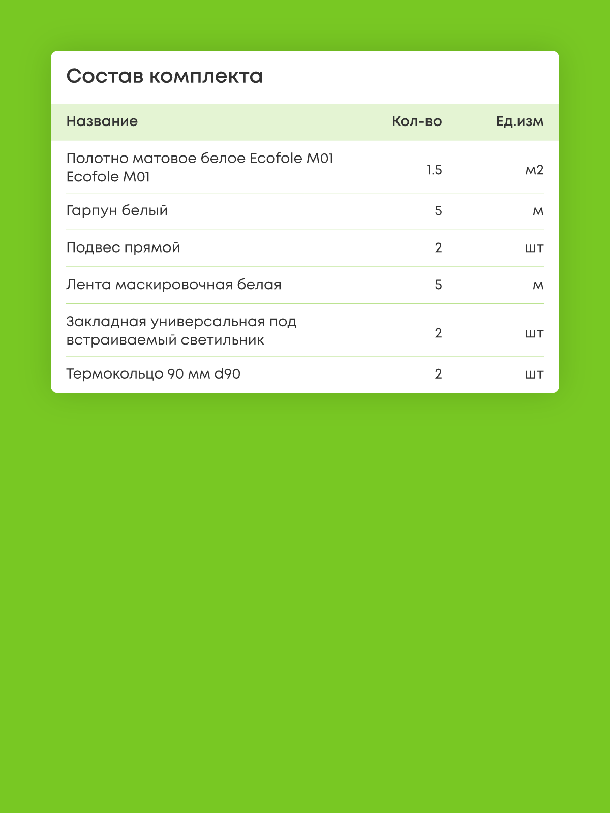 Матовый натяжной потолок 1.5 м2
