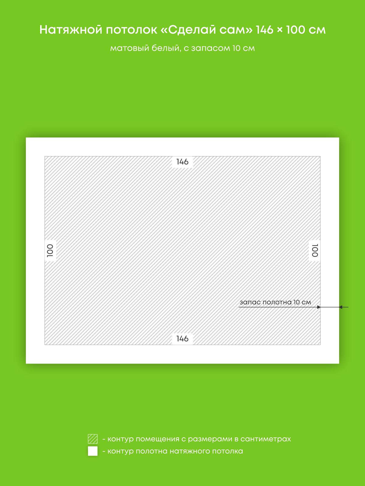 Натяжной потолок белый матовый, изготовленный по индивидуальным размерам покупателя, для помещения площадью 1.5 м2