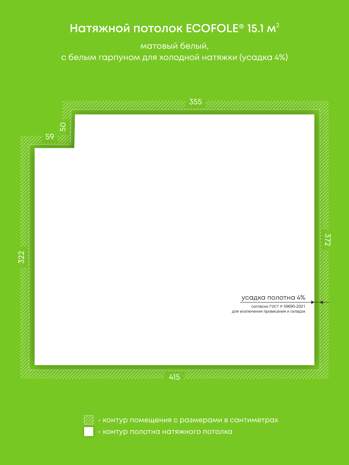 Матовый натяжной потолок 15.1 м2