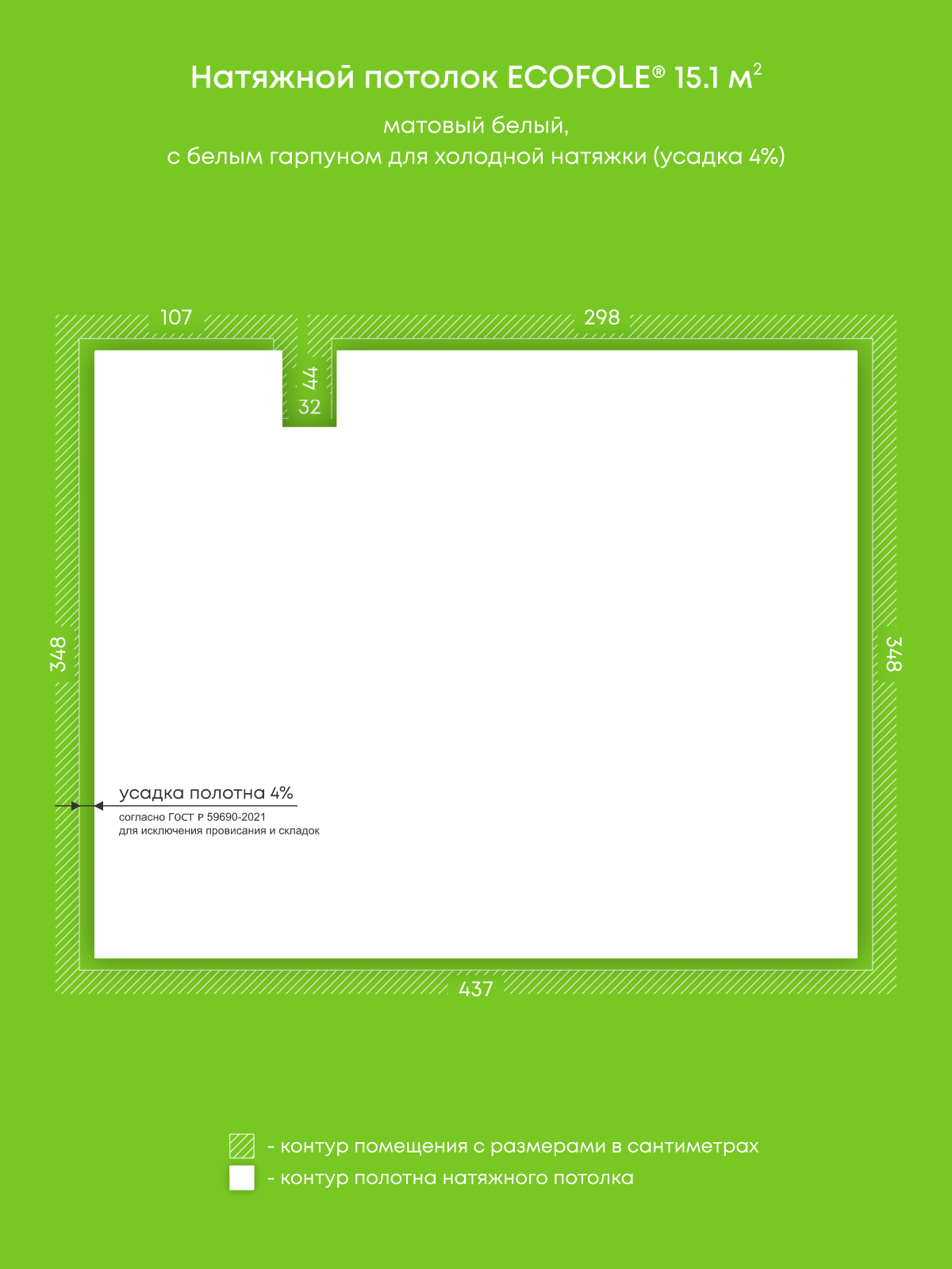 Матовый натяжной потолок 15.1 м2