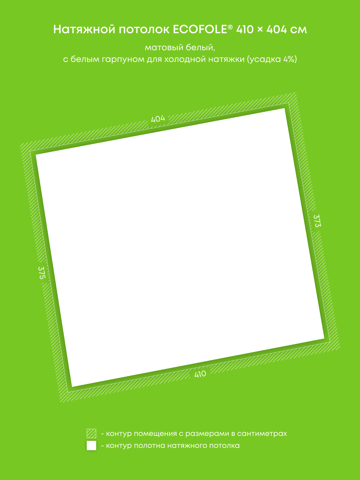 Натяжной потолок белый матовый, изготовленный по индивидуальным размерам покупателя, для помещения площадью 15.2 м2