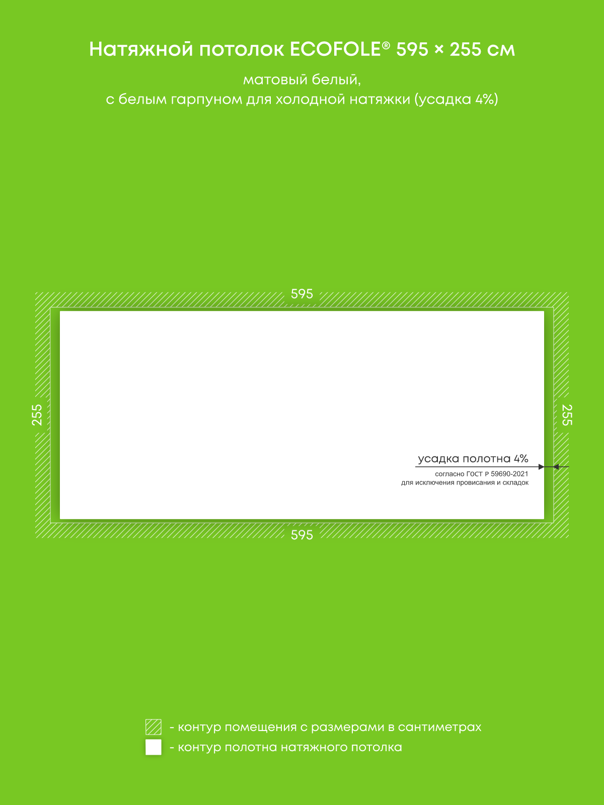 Натяжной потолок белый матовый, изготовленный по индивидуальным размерам покупателя, для помещения площадью 15.2 м2