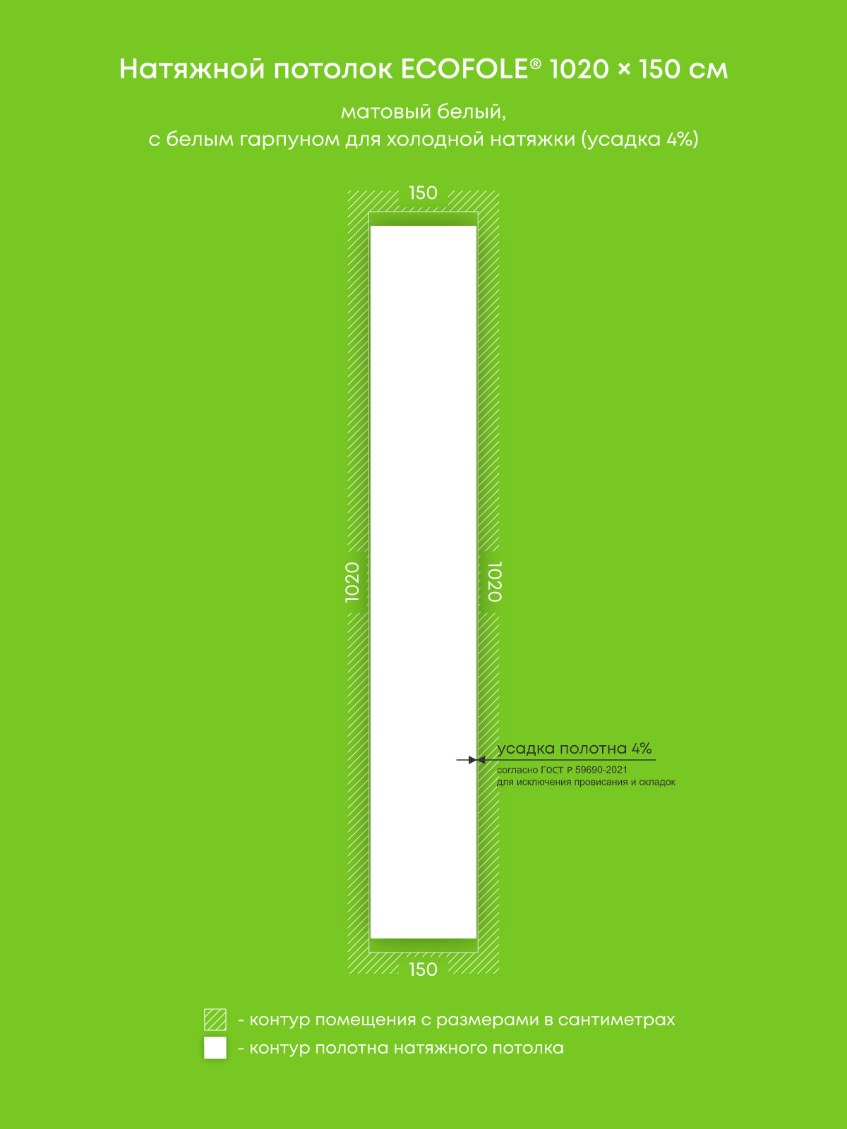 Натяжной потолок белый матовый, изготовленный по индивидуальным размерам покупателя, для помещения площадью 15.3 м2