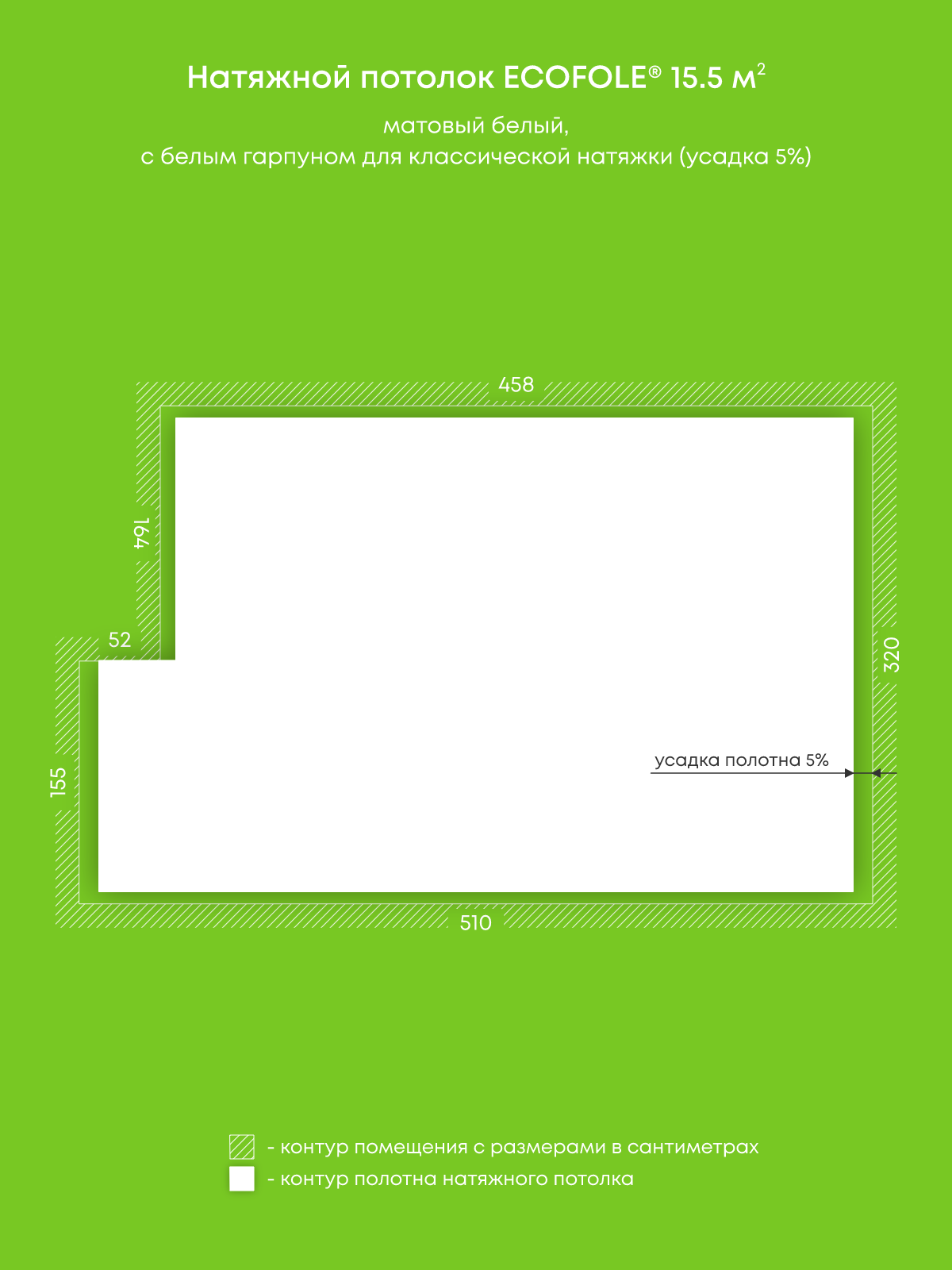 Матовый натяжной потолок 15.5 м2