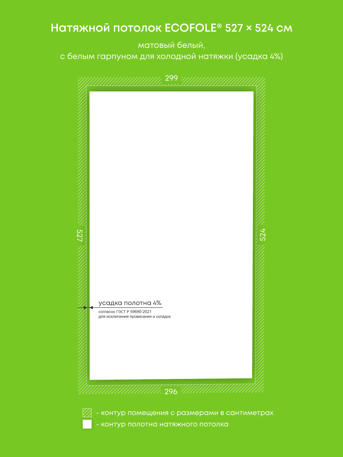 Натяжной потолок белый матовый, изготовленный по индивидуальным размерам покупателя, для гостиной площадью 15.6 м2