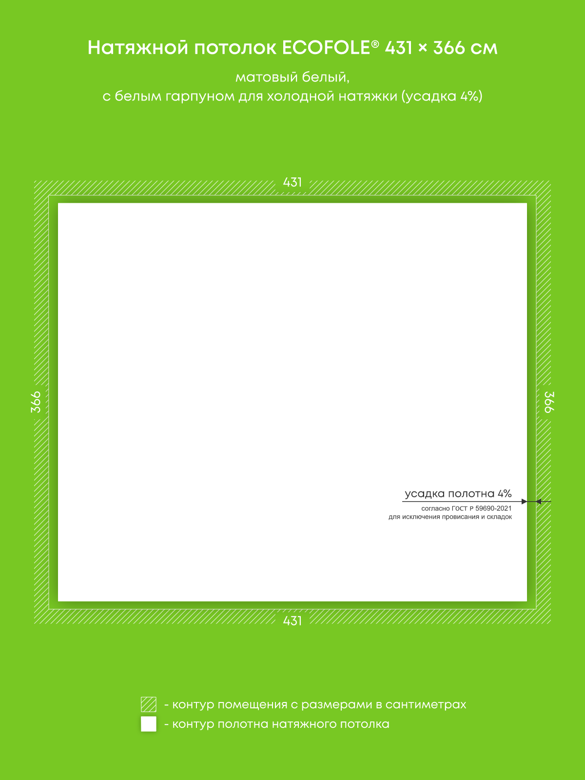 Натяжной потолок белый матовый, изготовленный по индивидуальным размерам покупателя, для кухни площадью 15.8 м2
