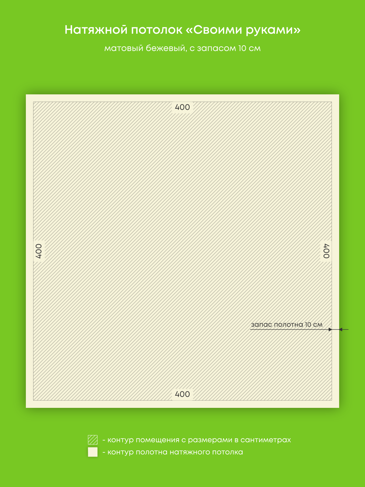 Натяжной потолок бежевый матовый, изготовленный по индивидуальным размерам покупателя, для комнаты площадью 16 м2