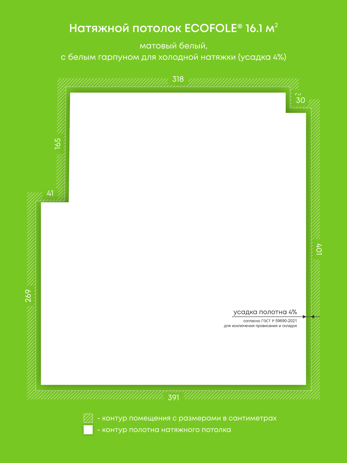 Матовый натяжной потолок 16.1 м2