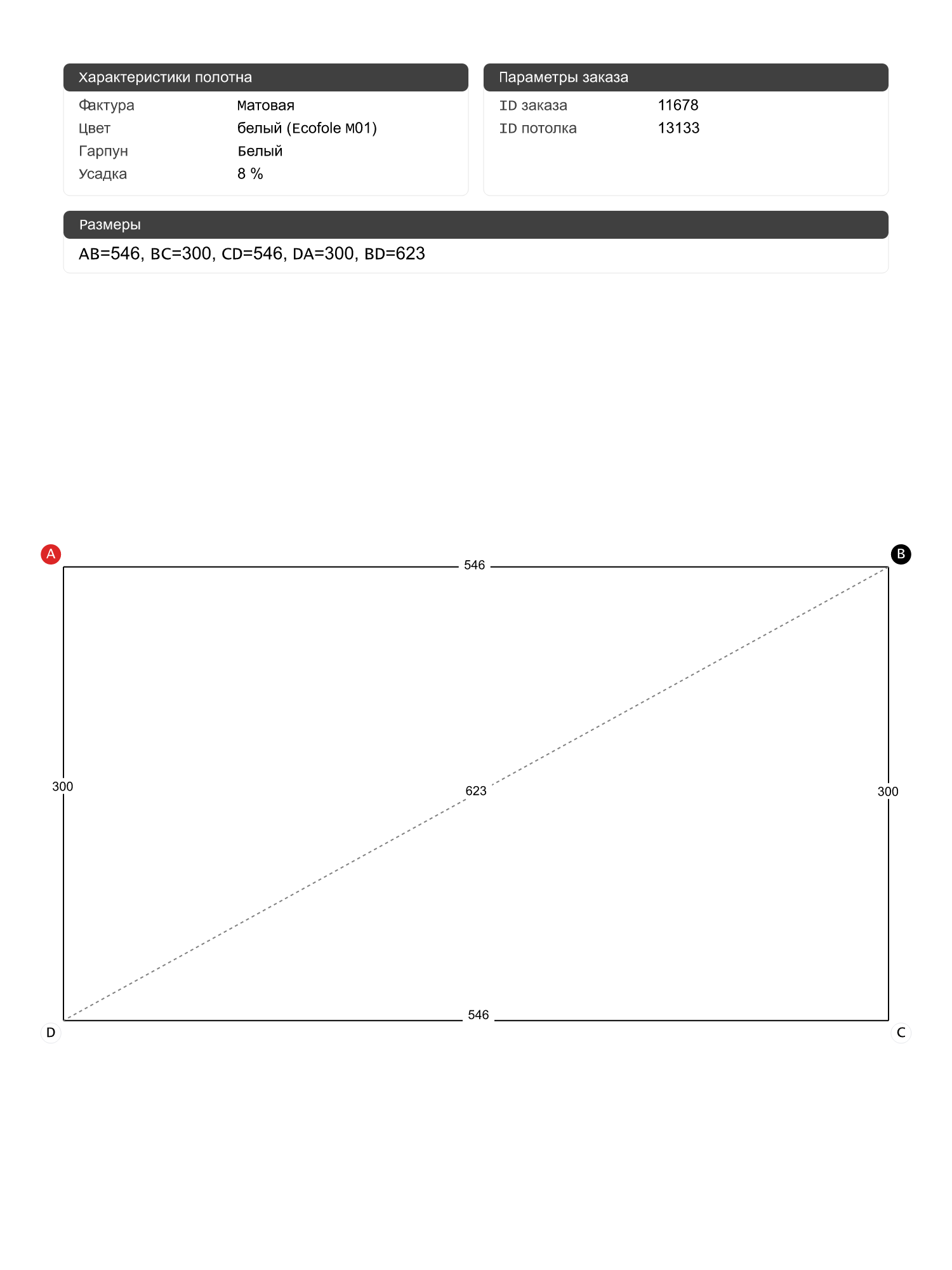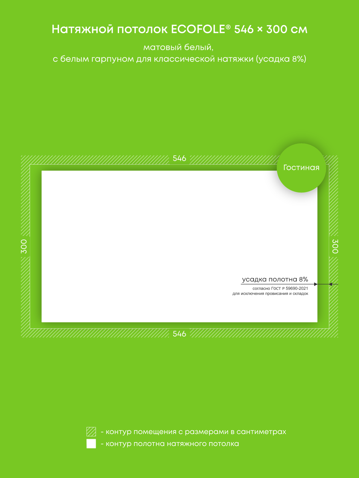 Натяжной потолок белый матовый, классической натяжки, изготовленный по индивидуальным размерам покупателя, для помещения площадью 16.4 м2