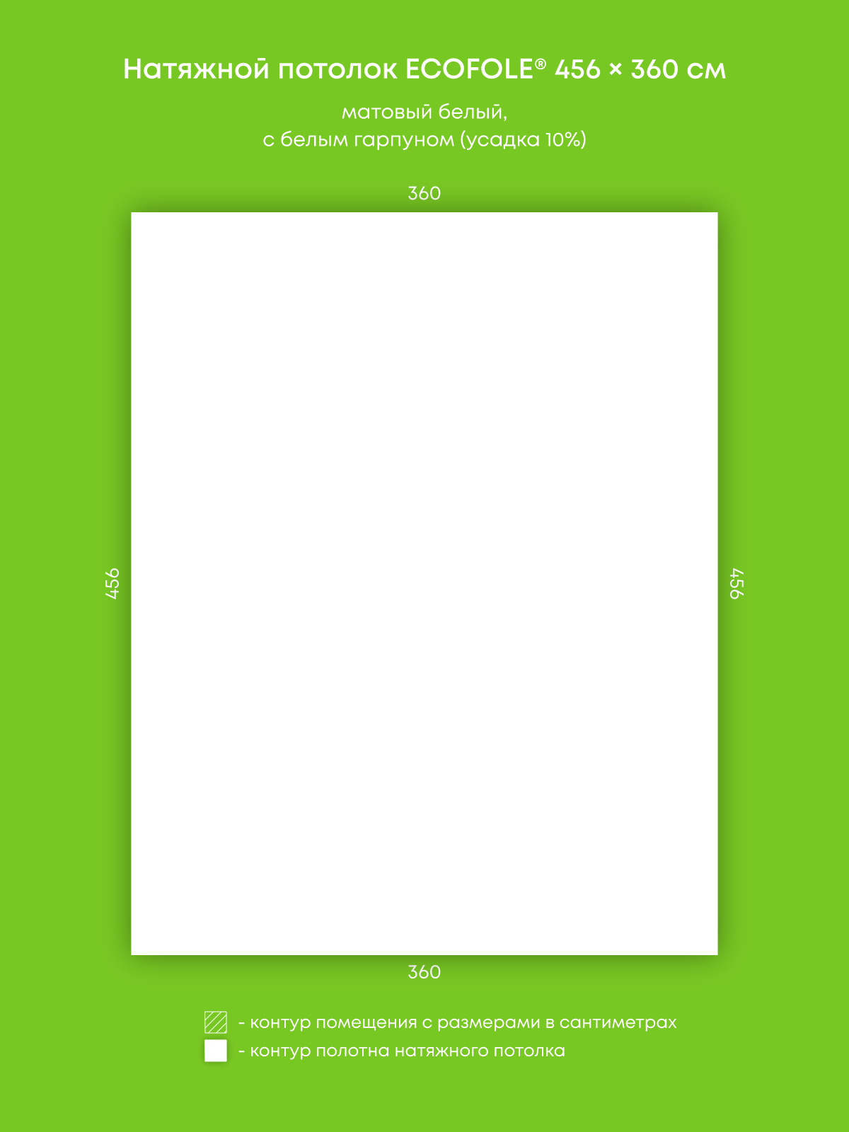 Натяжной потолок белый матовый, изготовленный по индивидуальным размерам покупателя, для помещения площадью 16.4 м2