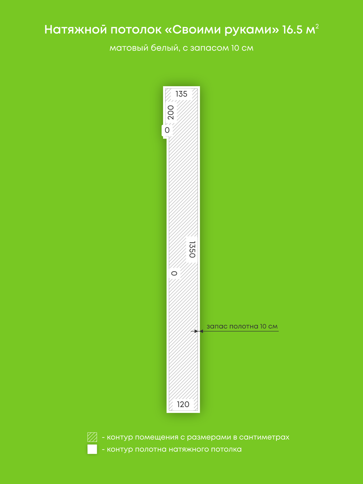 Натяжной потолок белый матовый, изготовленный по индивидуальным размерам покупателя, для помещения площадью 16.5 м2