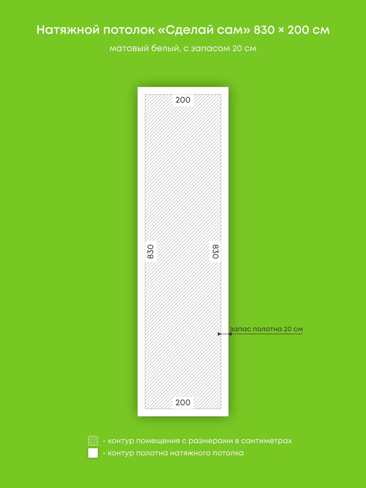 Натяжной потолок белый матовый, изготовленный по индивидуальным размерам покупателя, для комнаты площадью 16.6 м2