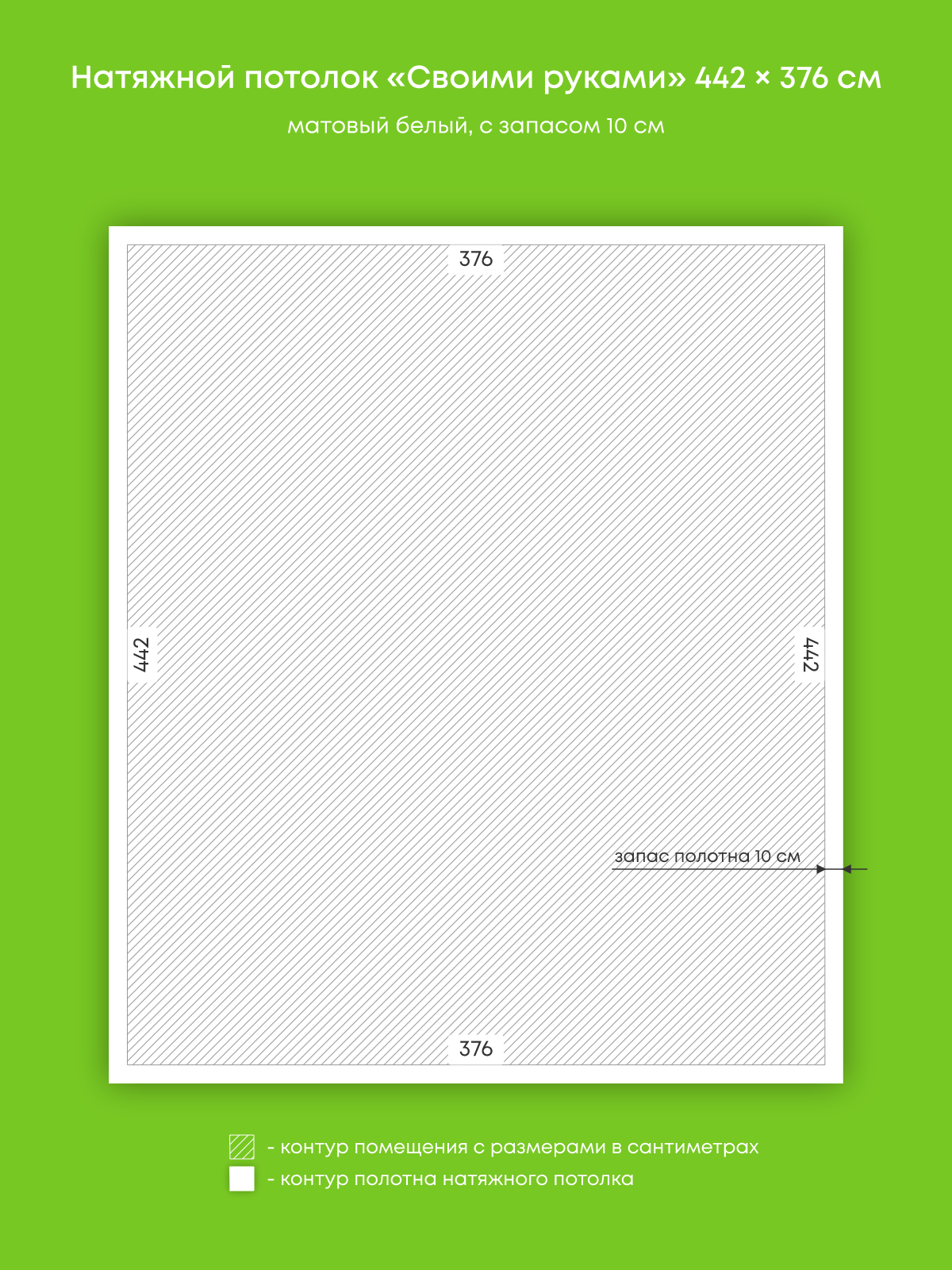 Натяжной потолок белый матовый, изготовленный по индивидуальным размерам покупателя, для кухни площадью 16.6 м2