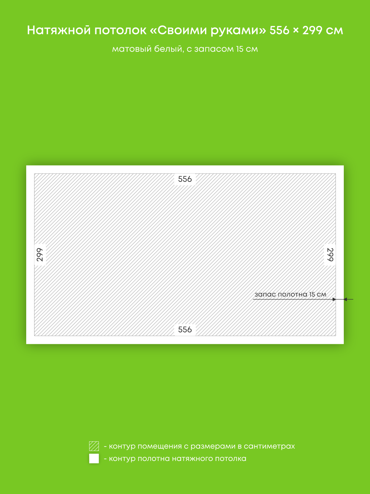 Натяжной потолок белый матовый, изготовленный по индивидуальным размерам покупателя, для спальни площадью 16.6 м2