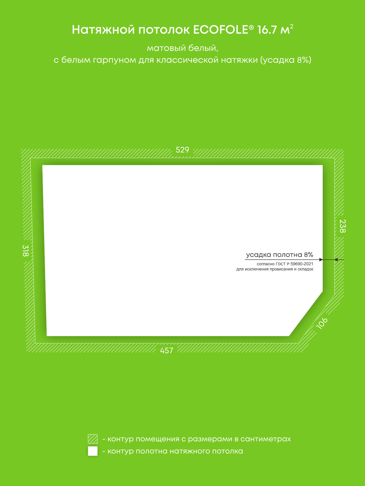 Матовый натяжной потолок 16.7 м2