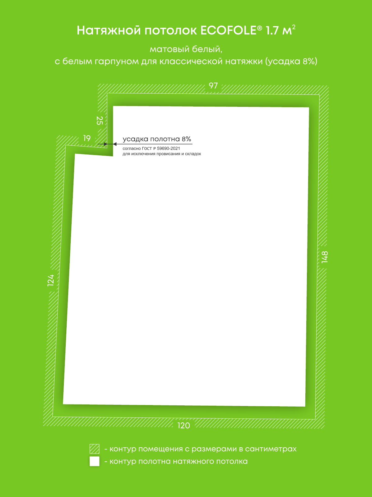 Матовый натяжной потолок 1.7 м2