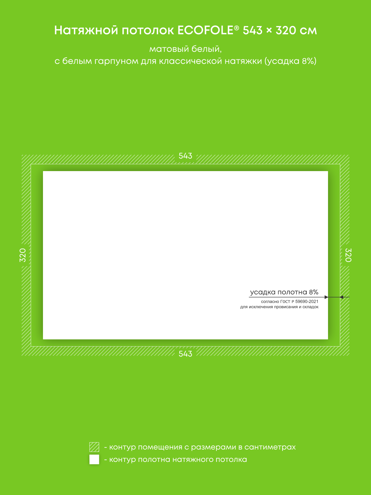 Матовый натяжной потолок 17.4 м2