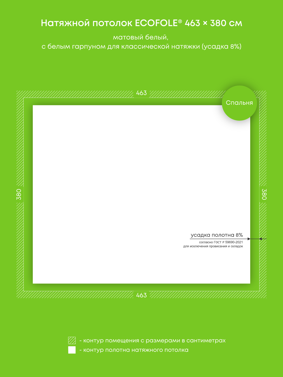 Натяжной потолок белый матовый, классической натяжки, изготовленный по индивидуальным размерам покупателя, для помещения площадью 17.6 м2