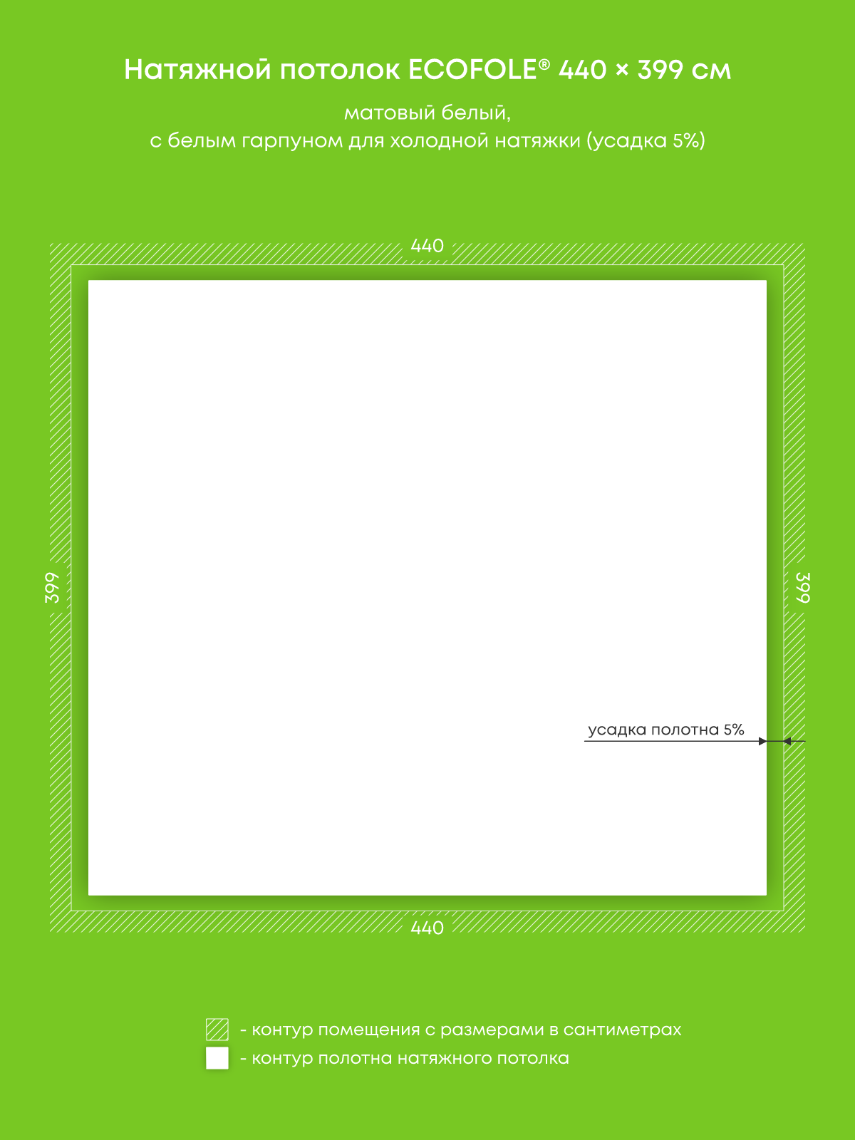 Натяжной потолок белый матовый, изготовленный по индивидуальным размерам покупателя, для гостиной площадью 17.6 м2