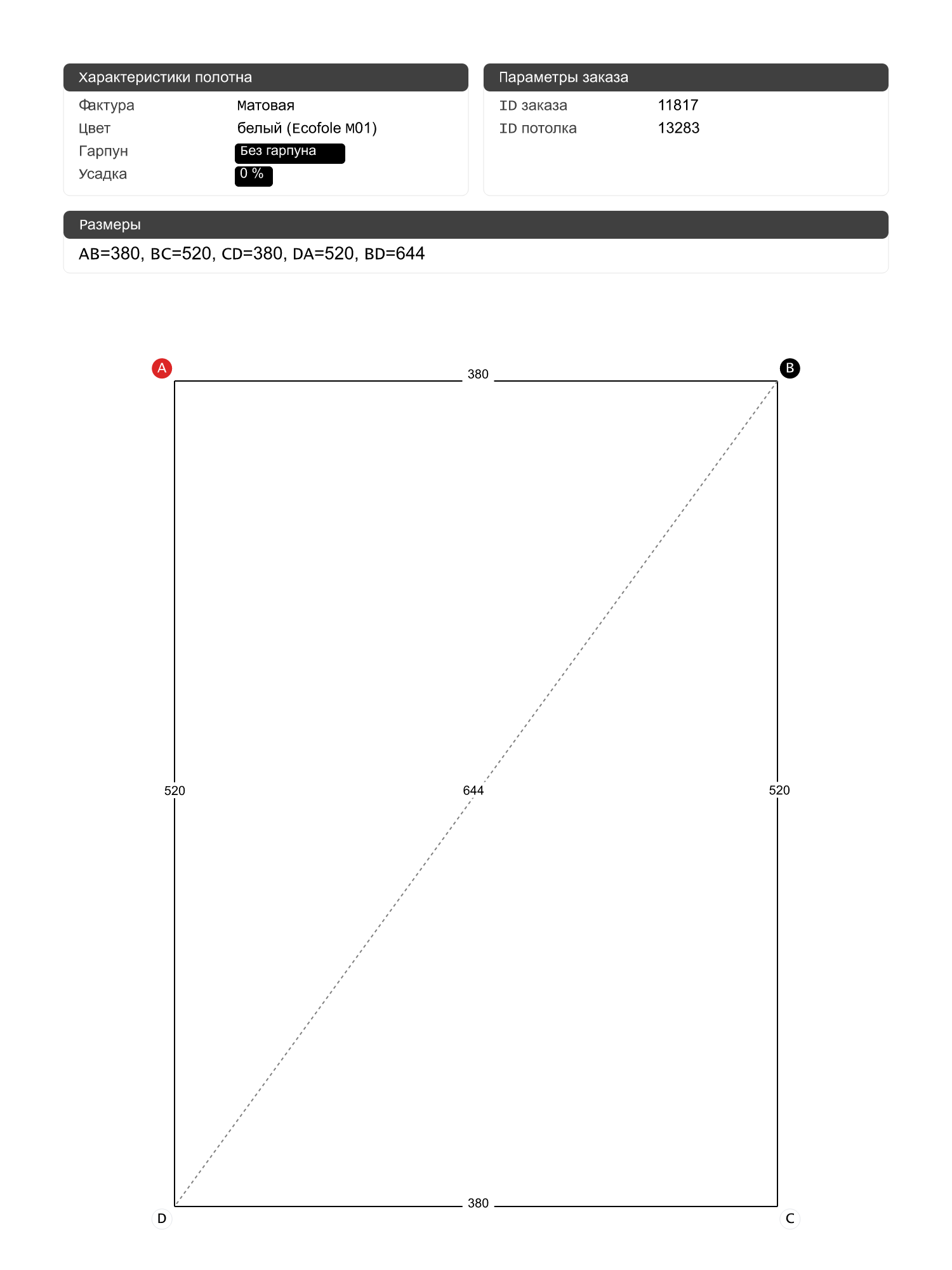Натяжной потолок белый матовый, сделай сам, изготовленный по индивидуальным размерам покупателя, для помещения площадью 18 м2