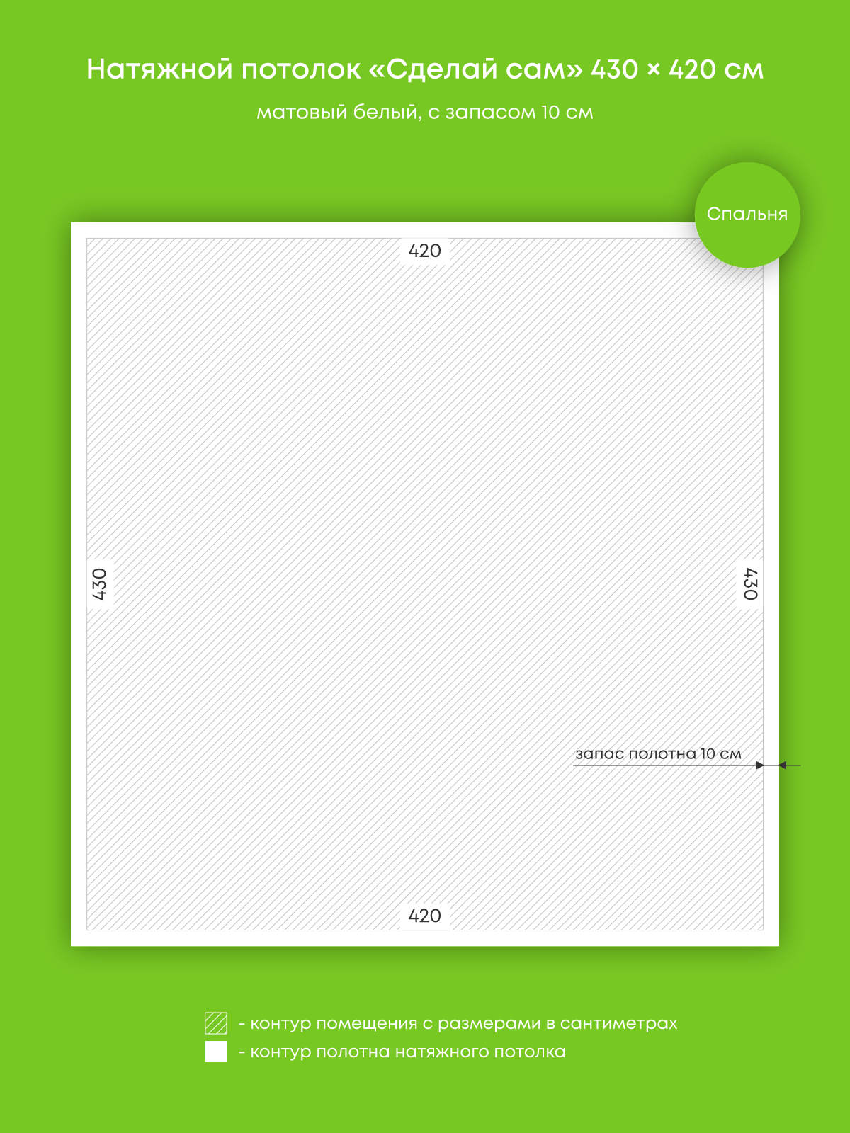 Натяжной потолок белый матовый, сделай сам, изготовленный по индивидуальным размерам покупателя, для помещения площадью 18.1 м2