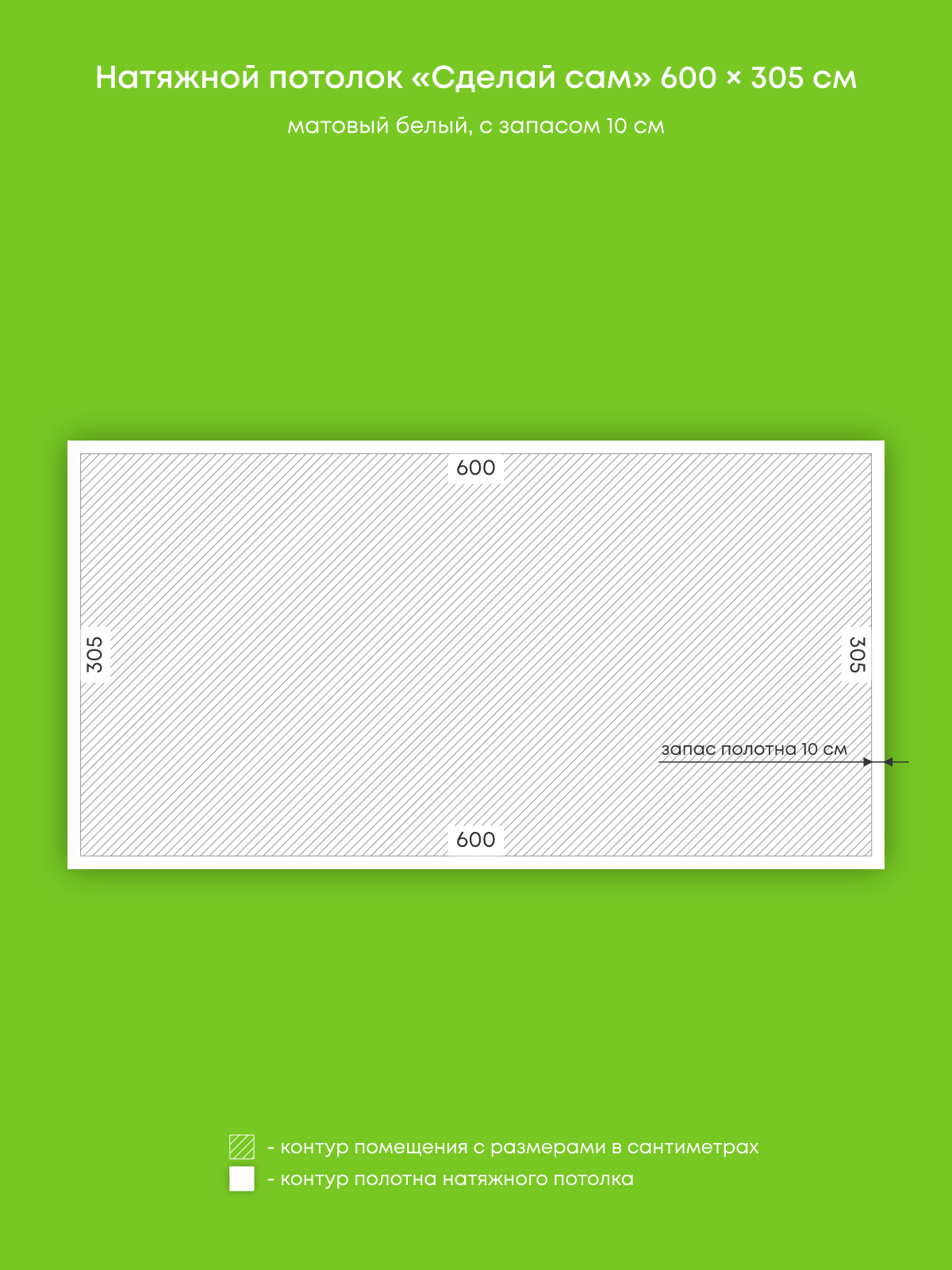 Натяжной потолок белый матовый, изготовленный по индивидуальным размерам покупателя, для гостиной площадью 18.3 м2