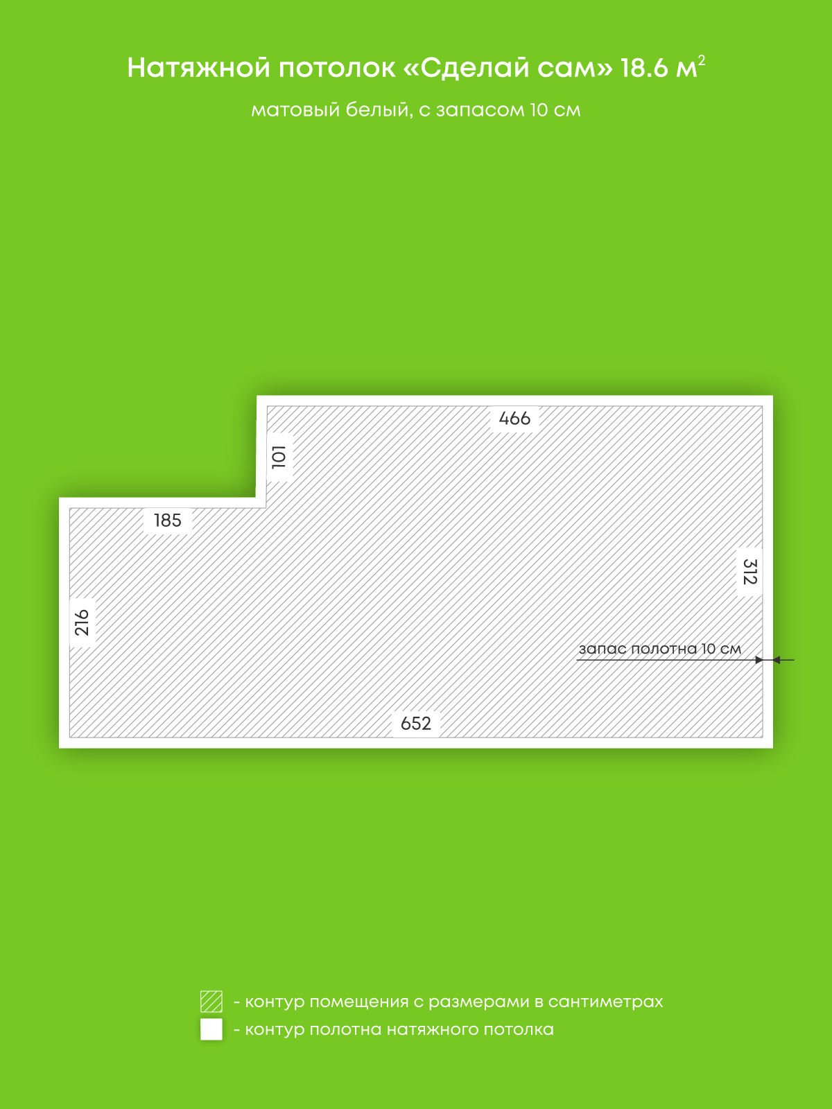 Натяжной потолок белый матовый, изготовленный по индивидуальным размерам покупателя, для комнаты площадью 18.6 м2
