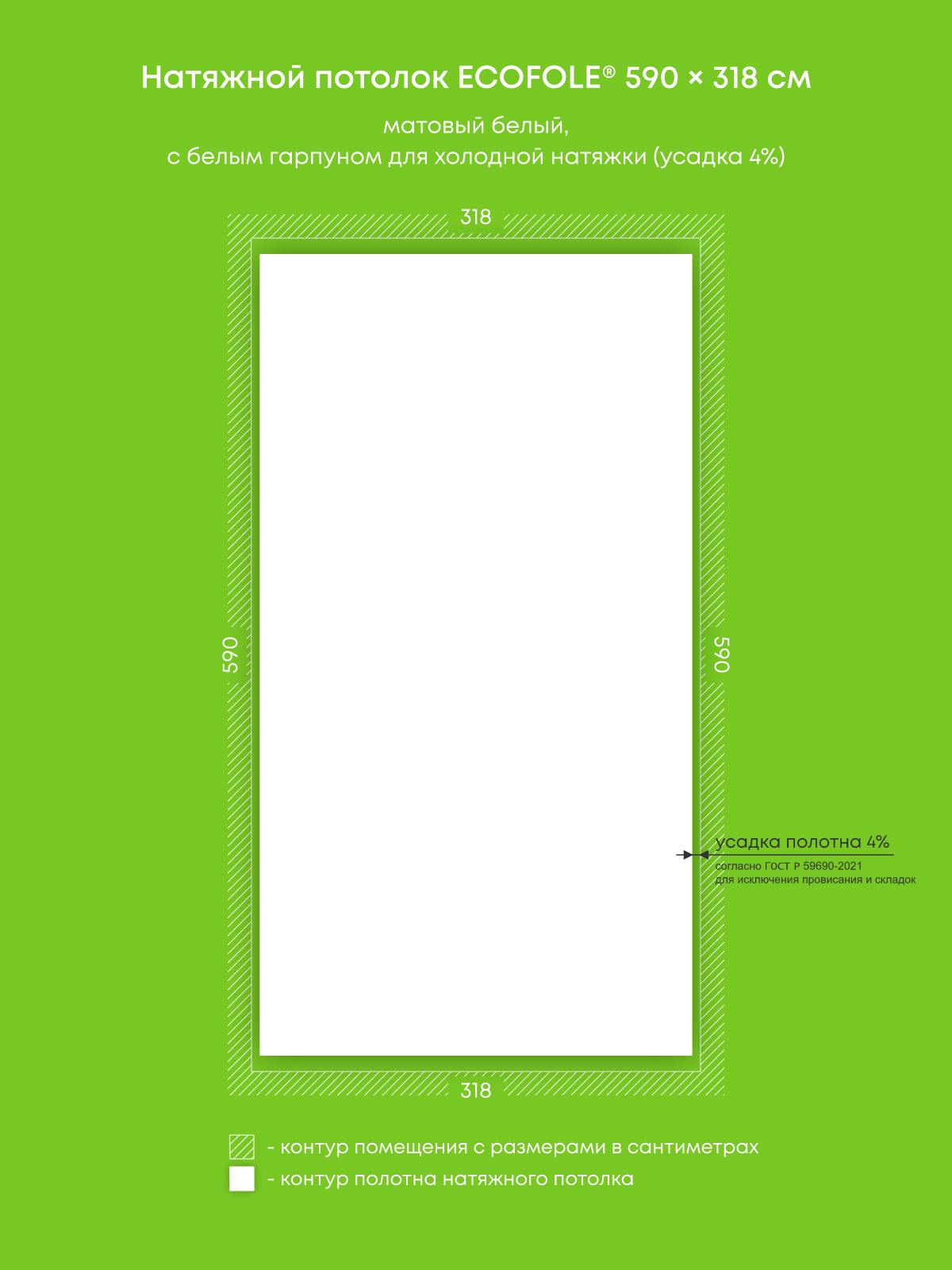 Натяжной потолок белый матовый, изготовленный по индивидуальным размерам покупателя, для гостиной площадью 18.8 м2