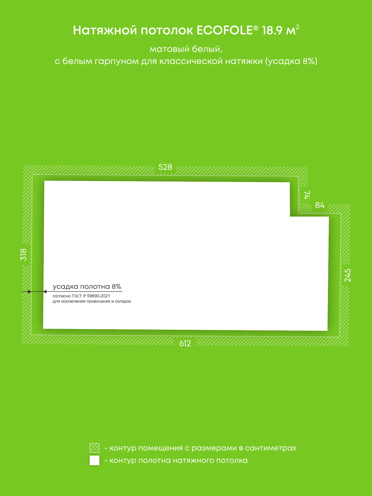 Матовый натяжной потолок 18.9 м2