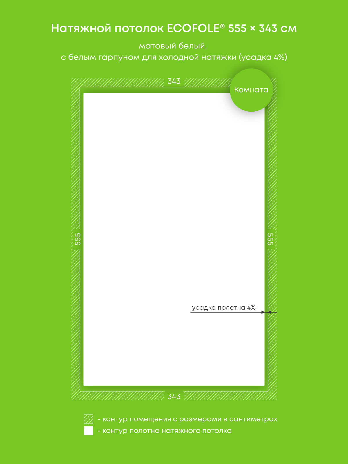 Натяжной потолок белый матовый, изготовленный по индивидуальным размерам покупателя, для комнаты площадью 19 м2