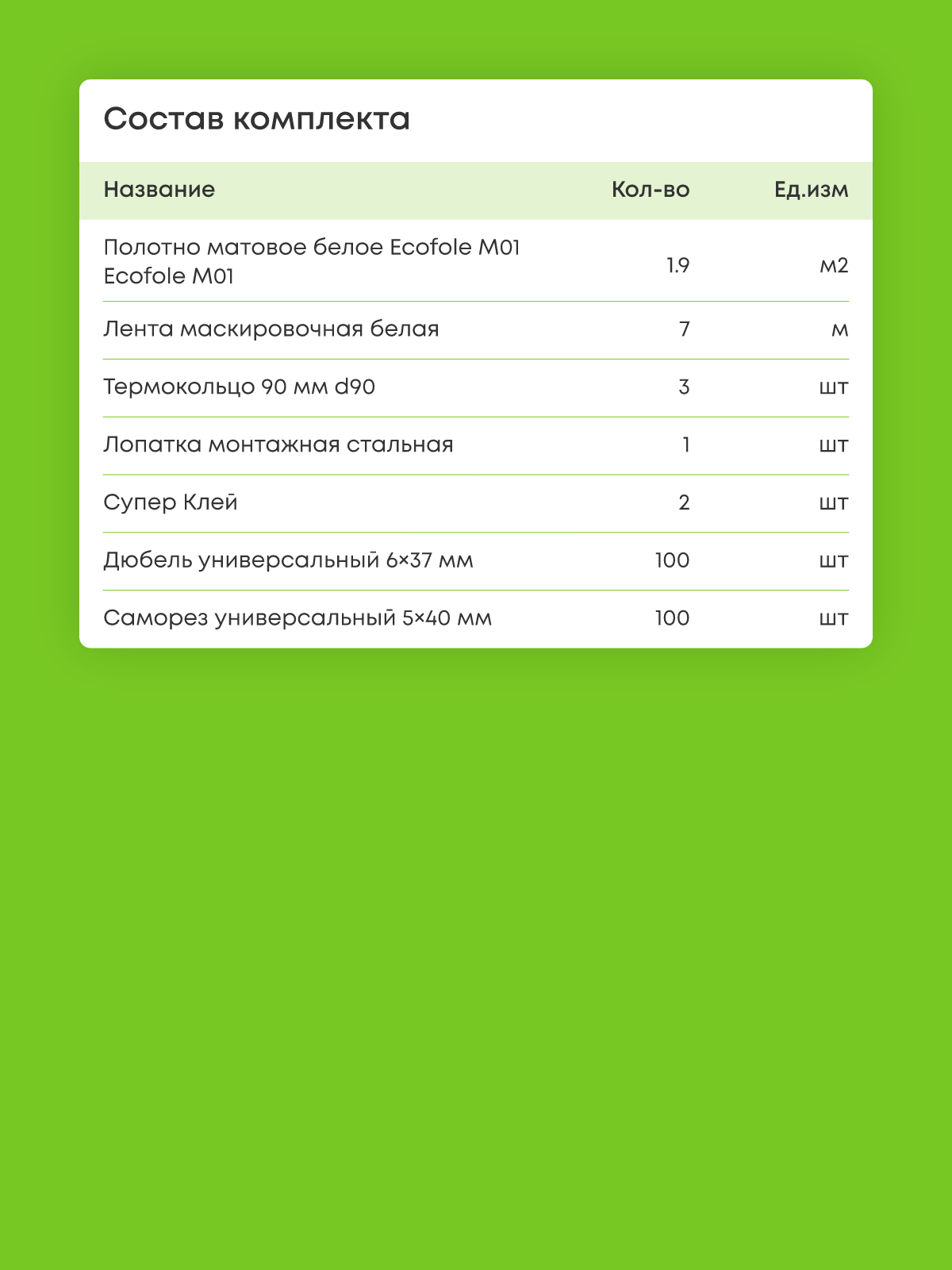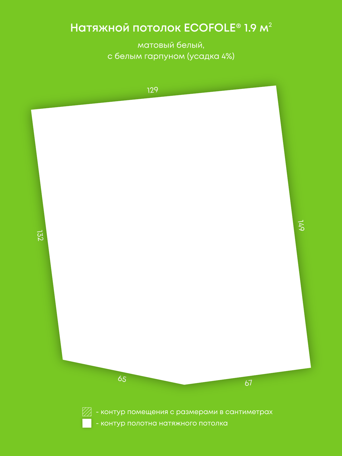 Натяжной потолок белый матовый, изготовленный по индивидуальным размерам покупателя, для помещения площадью 1.9 м2