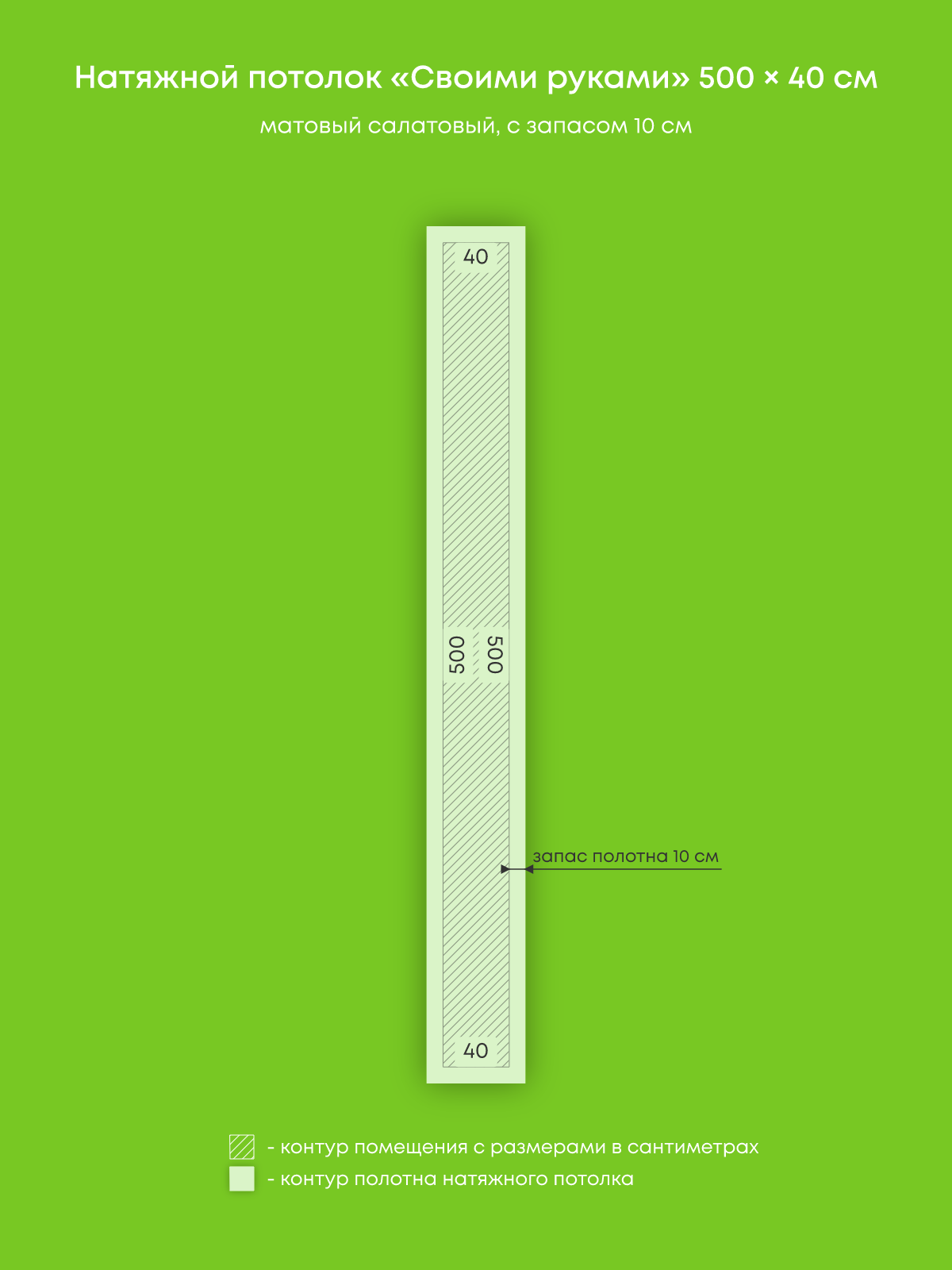 Натяжной потолок салатовый матовый, изготовленный по индивидуальным размерам покупателя, для спальни площадью 2 м2