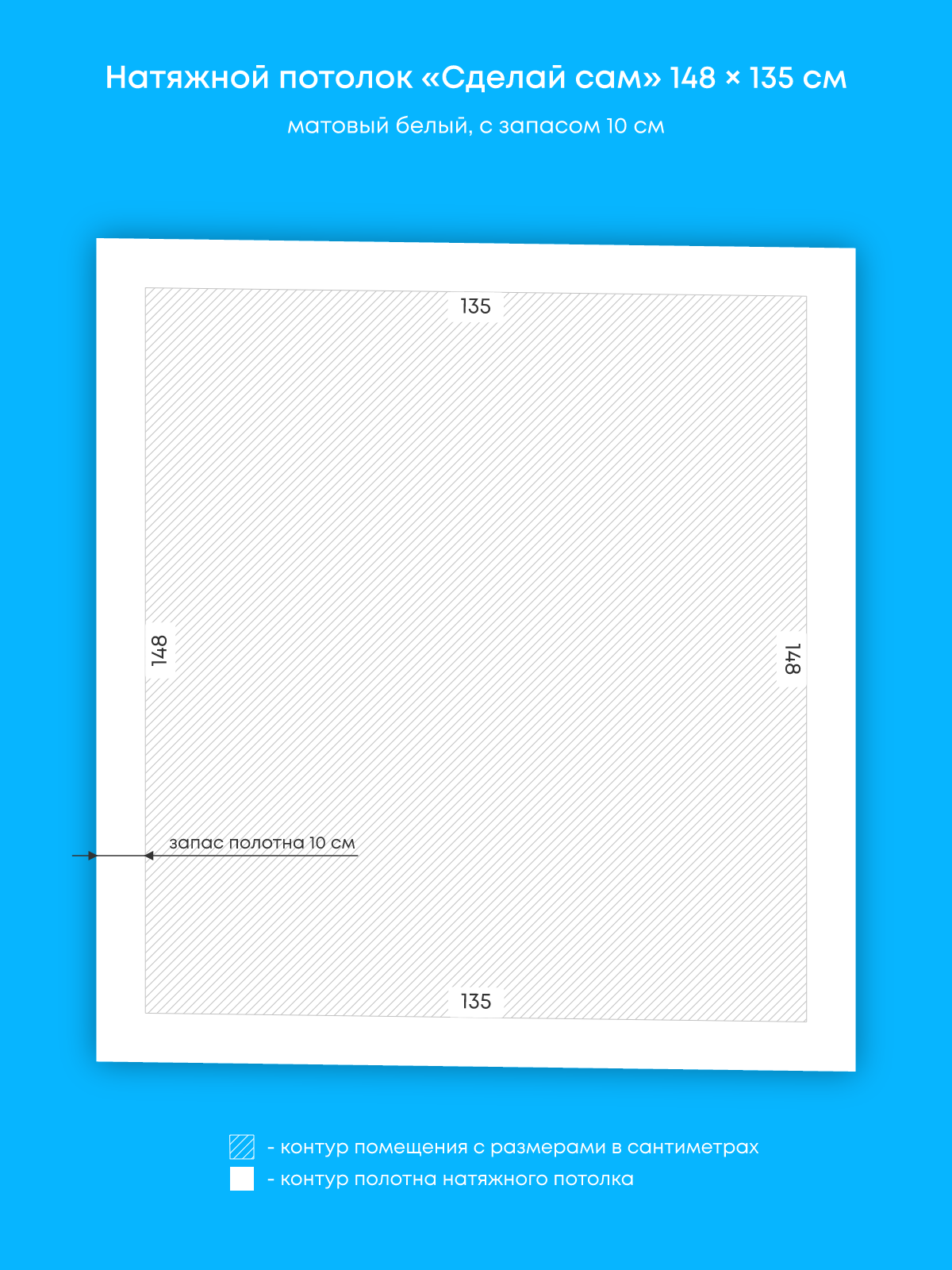 Натяжной потолок белый матовый, изготовленный по индивидуальным размерам покупателя, для помещения площадью 2 м2
