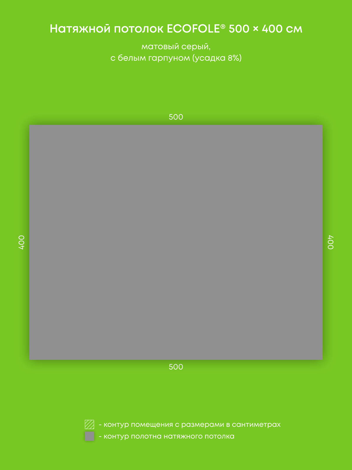 Натяжной потолок серый матовый, изготовленный по индивидуальным размерам покупателя, для помещения площадью 20 м2