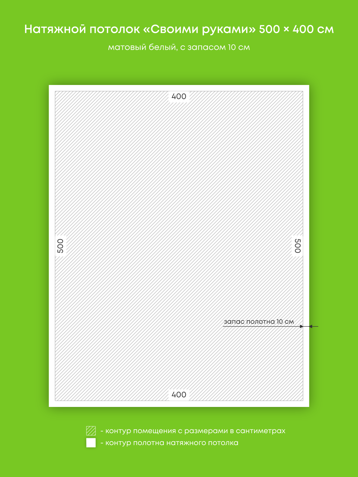 Натяжной потолок белый матовый, изготовленный по индивидуальным размерам покупателя, для комнаты площадью 20 м2
