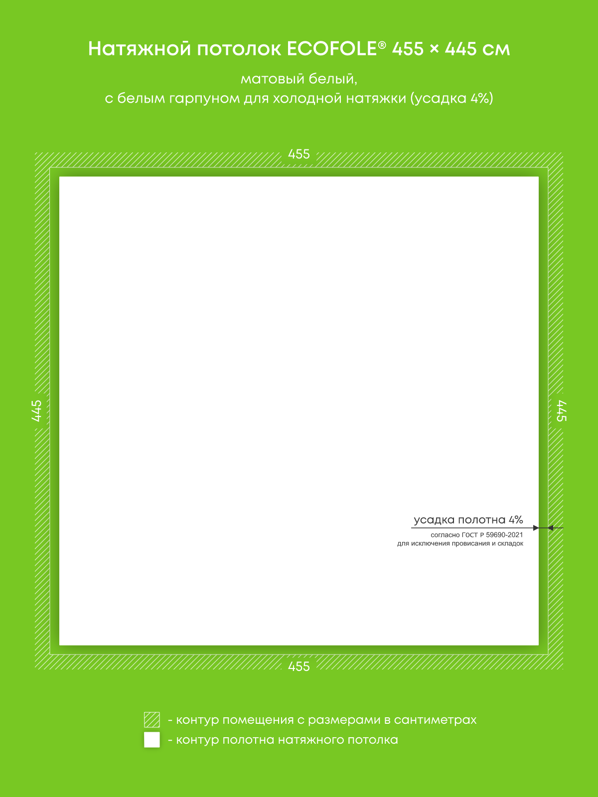Натяжной потолок белый матовый, изготовленный по индивидуальным размерам покупателя, для комнаты площадью 20.2 м2