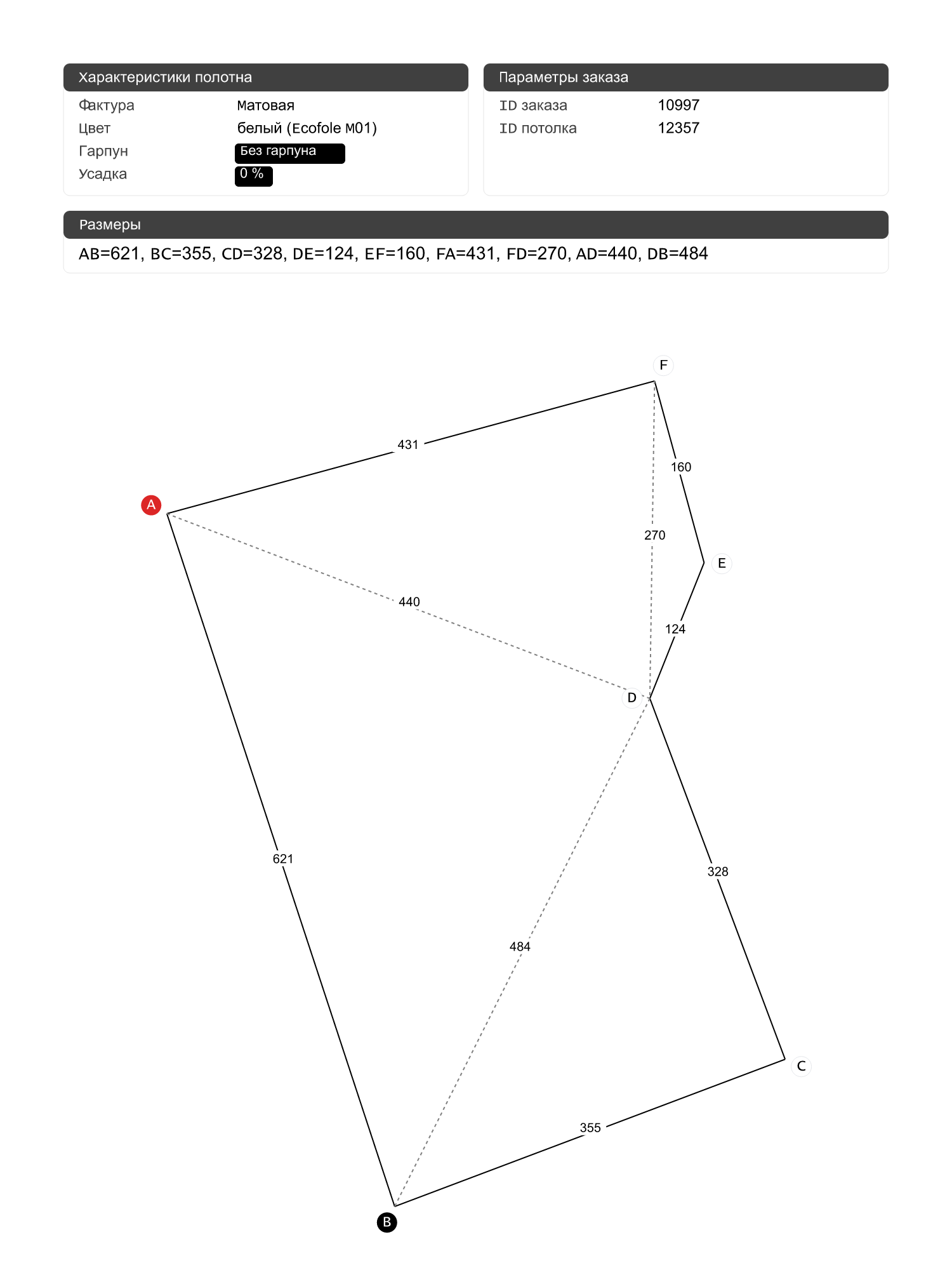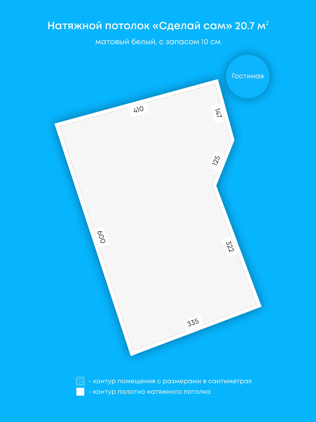 Натяжной потолок белый матовый, сделай сам, изготовленный по индивидуальным размерам покупателя, для помещения площадью 20.7 м2